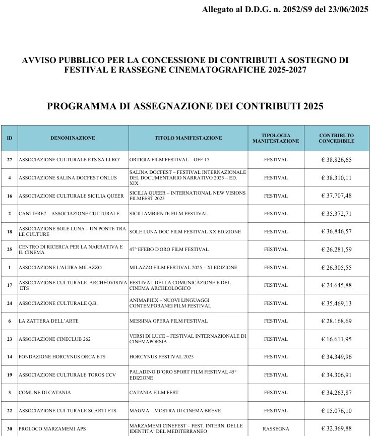 “Ancora più grave- prosegue Traina- è presentare questa rassegna come “sesta edizione”, quando in realtà è soltanto la “quarta”: basta visitare il sito del Marzamemi Cinefest per constatare che le uniche edizioni precedenti sono quelle del 2022, del 2023, e del 2024. Un artificio volto a costruirsi una falsa storicità, utile solo per accedere ai contributi della Sicilia Film Commission, riservati a manifestazioni con almeno cinque edizioni continuative”.