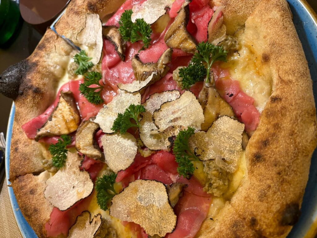 Una ‘pizza experience’ targata Mazzini 60 che ha trasportato i giornalisti enogastronomici nel viaggio culinario studiato e voluto da Davide Giallongo. Da pizze marcatamente tradizionali come la ‘Margherita’, condita con un sugo di pomodoro che ci ha ricordato al palato il gusto dolce di quello eseguito con maestria dalle nostre nonne, per arrivare a prodotti dalle sfaccettature più elaborate come la pizza ‘Carpaccio’, con funghi cardoncelli e petali di tartufo.