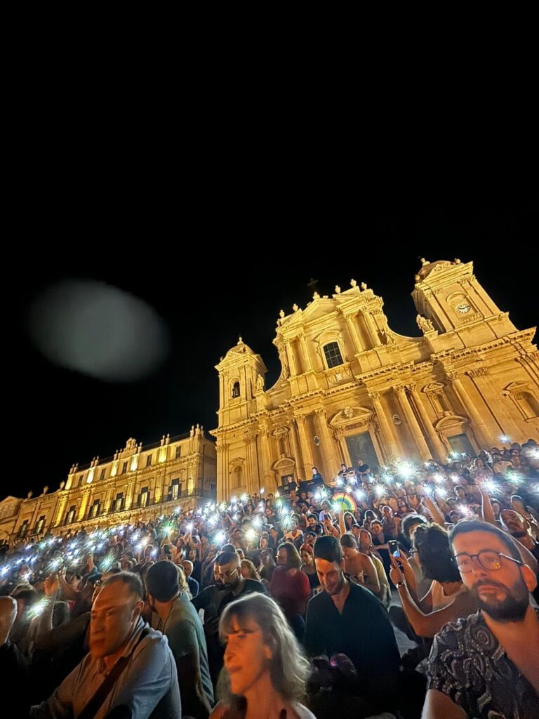 Alle orecchie dei presenti è risuonata una dedica appassionata per la meravigliosa location che ospitava il concerto, incastonata tra i capitelli ed il colonnato del Palazzo di Città e l’imponenza della Cattedrale settecentesca di Noto. Evento riuscitissimo, anche per le innumerevoli presenze.