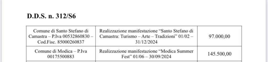 Quest’anno chissà quali eventi saranno inseriti nel calendario, visto l’importante flusso economico decretato con il D.D.S. n. 312/S6, contributo finanziario dell’Assessorato regionale del Turismo, dello Sport e dello Spettacolo ai sensi dell’art. 25 della L.r. 03/2024. La somma di cui il Comune di Modica beneficia per questo evento è pari a 145.500,00. Di seguito il dettaglio.